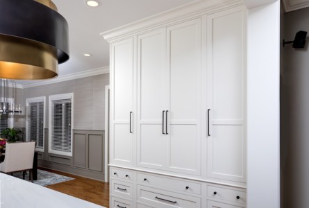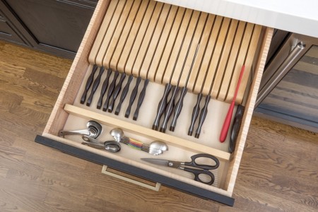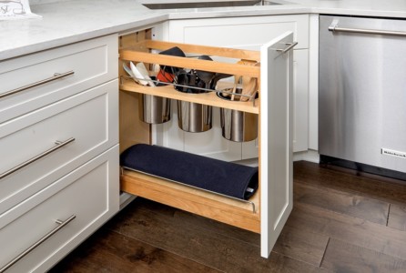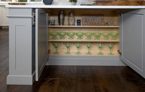 - Shallow cabinets at the front of the island – utilizing every square inch of storage.