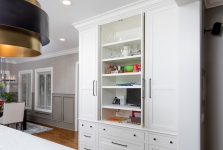 - Cabinet with doors that retract – TV and “storage for stuff” you want to keep out of site.