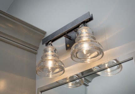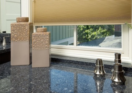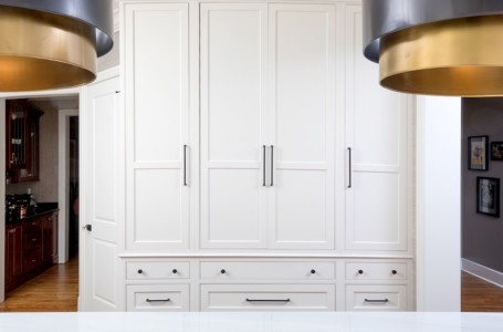 - Black and gold tones on lighting, cabinet hardware and kitchen faucet