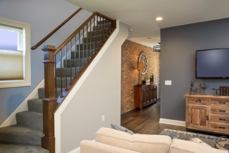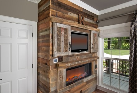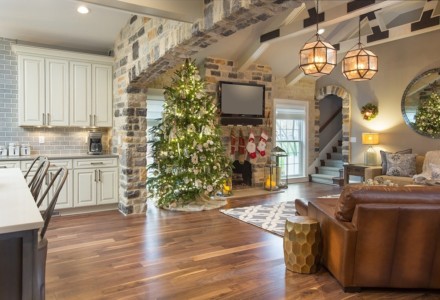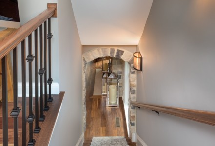 - Family room fireplace – stone like the exterior and big beefy mantel with corbels – totally fits the feel of the house