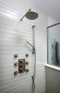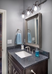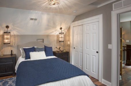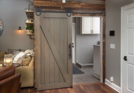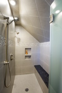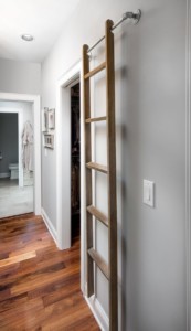 - “Hobbit” closet door in the bathroom – we utilized the space under the roof for a reach in closet for extra toiletries.