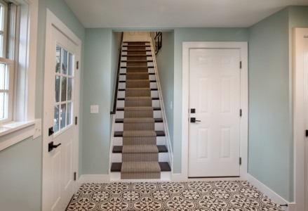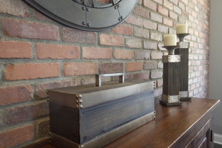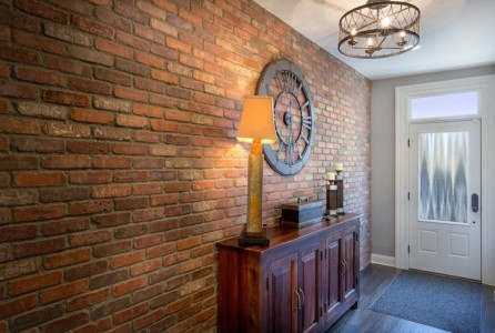 - Brick wall in foyer – such great texture and a great way to set off such a narrow space.