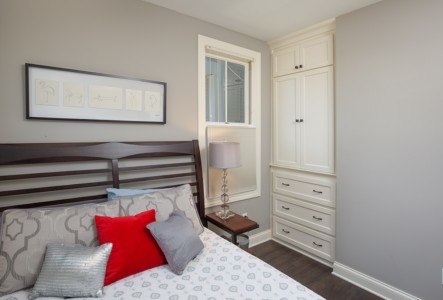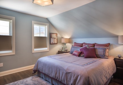 - Master bedroom accent wall wainscoting – just the right touch to dress up the space